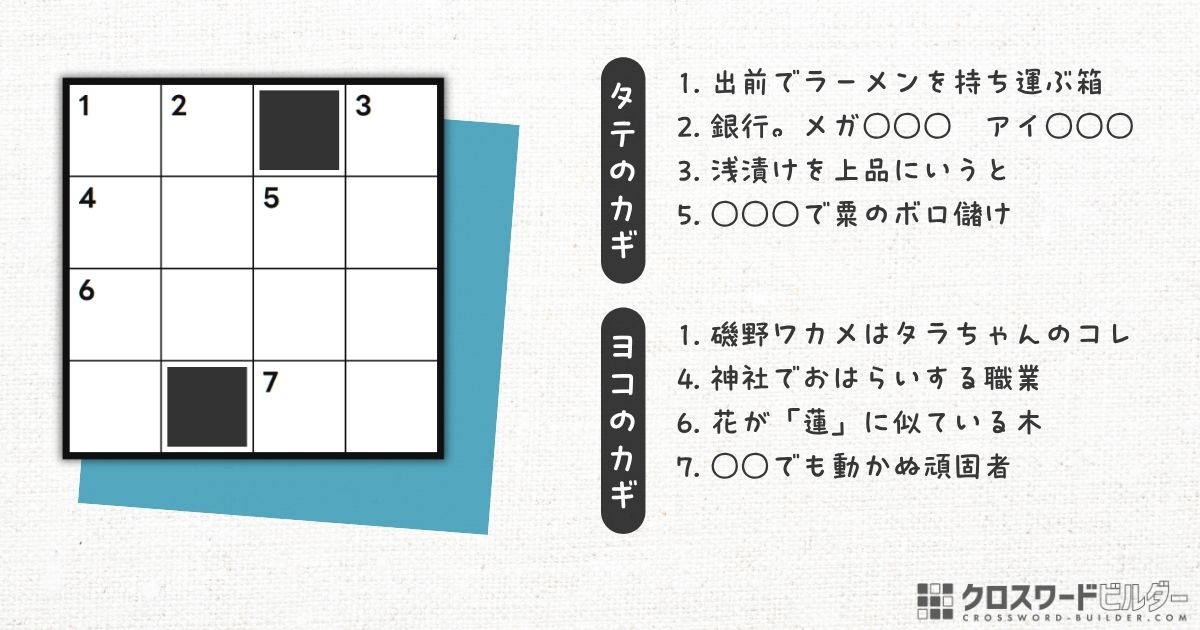 クロスワードパズル 小品#007「出前でラーメンを持ち運ぶ箱」