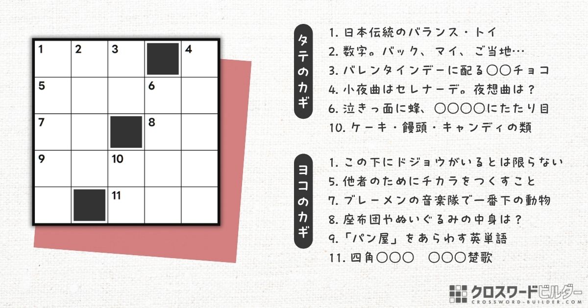 クロスワードパズル 小品#009「日本伝統のバランス・トイ」