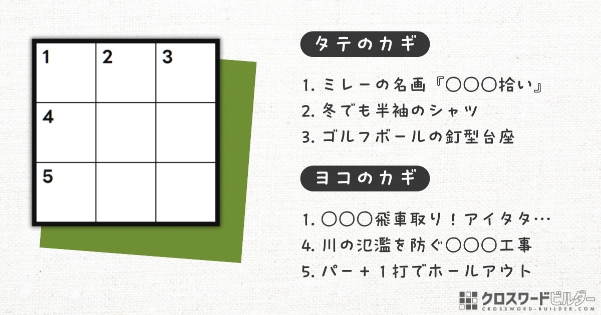 クロスワードパズル 小品#010「ミレーの名画『〇〇〇拾い』」