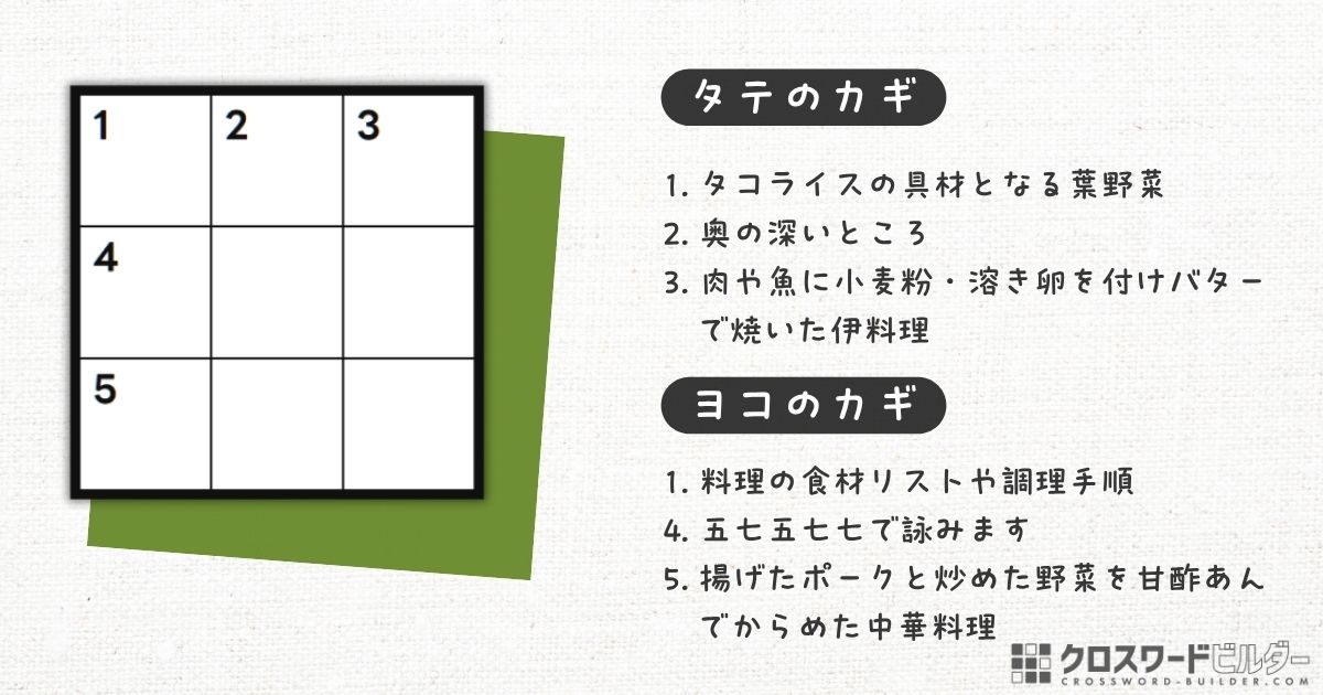 クロスワードパズル 小品#012「タコライスの具材となる葉野菜」