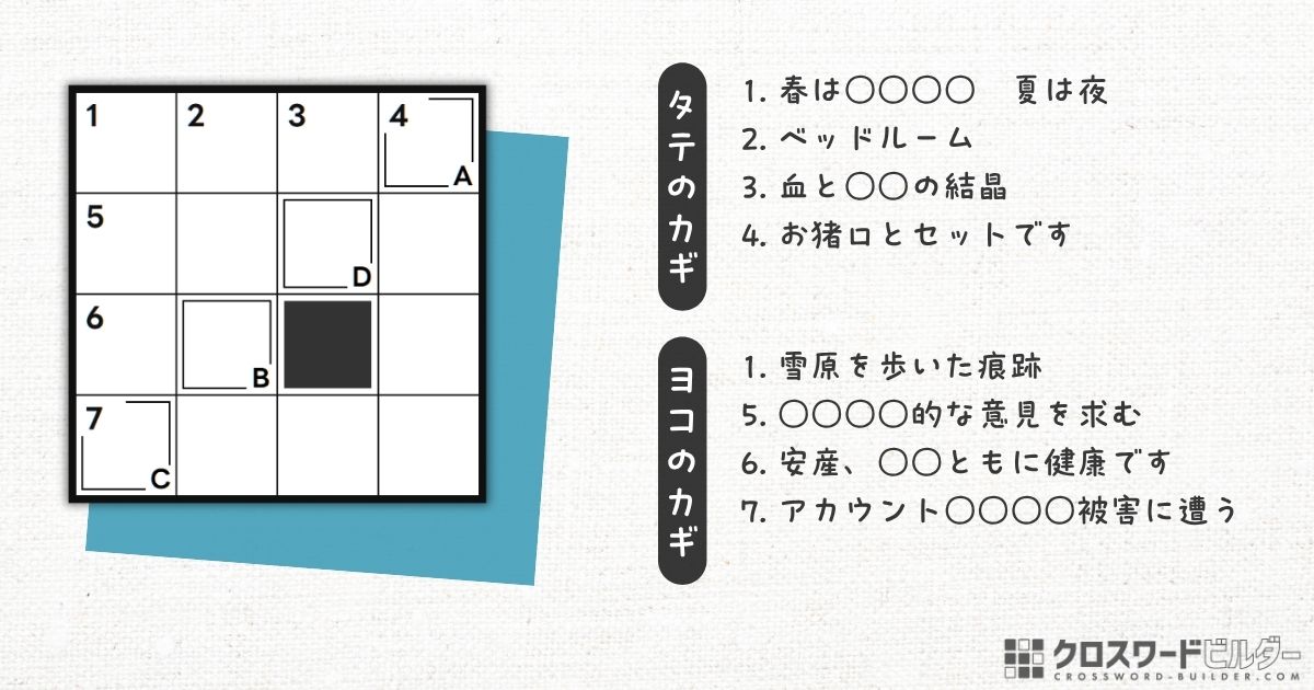 クロスワードパズル 小品#013「春は〇〇〇〇 夏は夜」