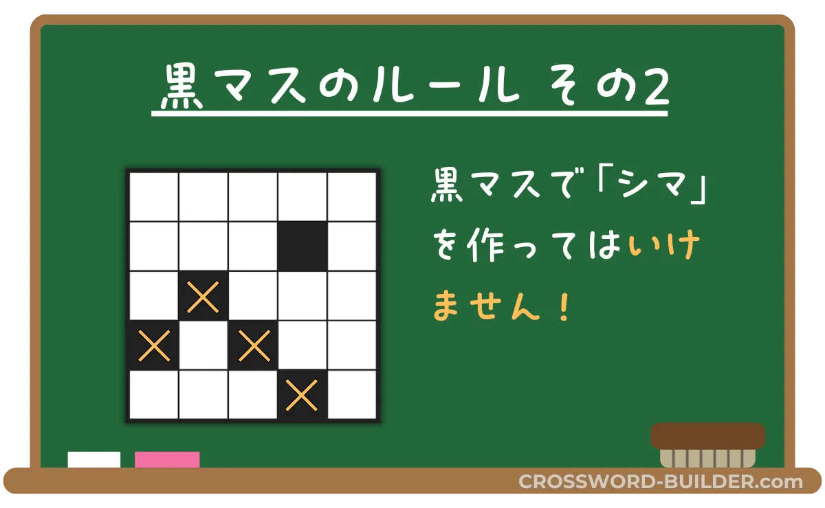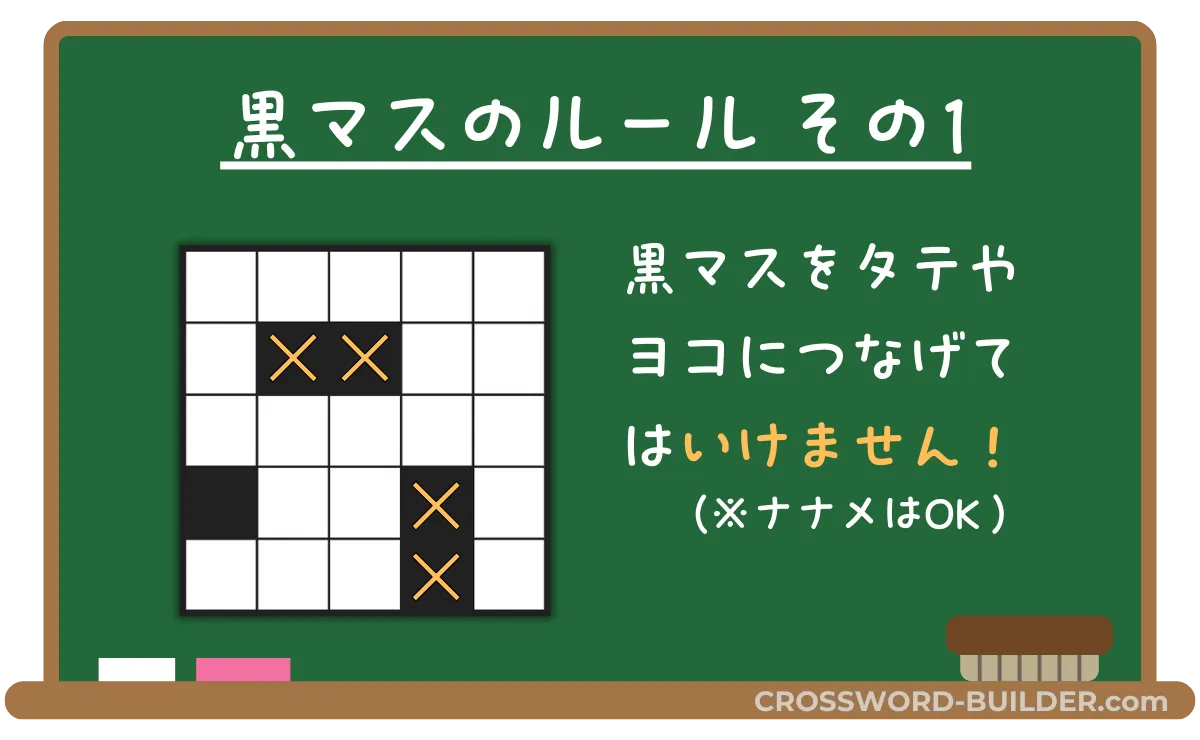 2つ、3つと黒マスをタテやヨコにつなげることはできません。