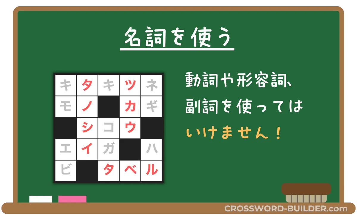 言葉は名詞のみ使用します(場合により固有名詞もOK)。