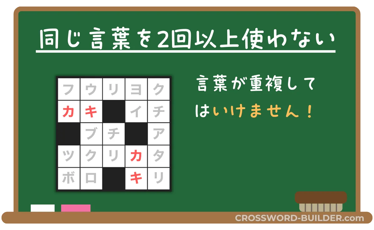 しかしクロスワードではひとつの言葉として扱うため、このような言葉の配置はできません。
