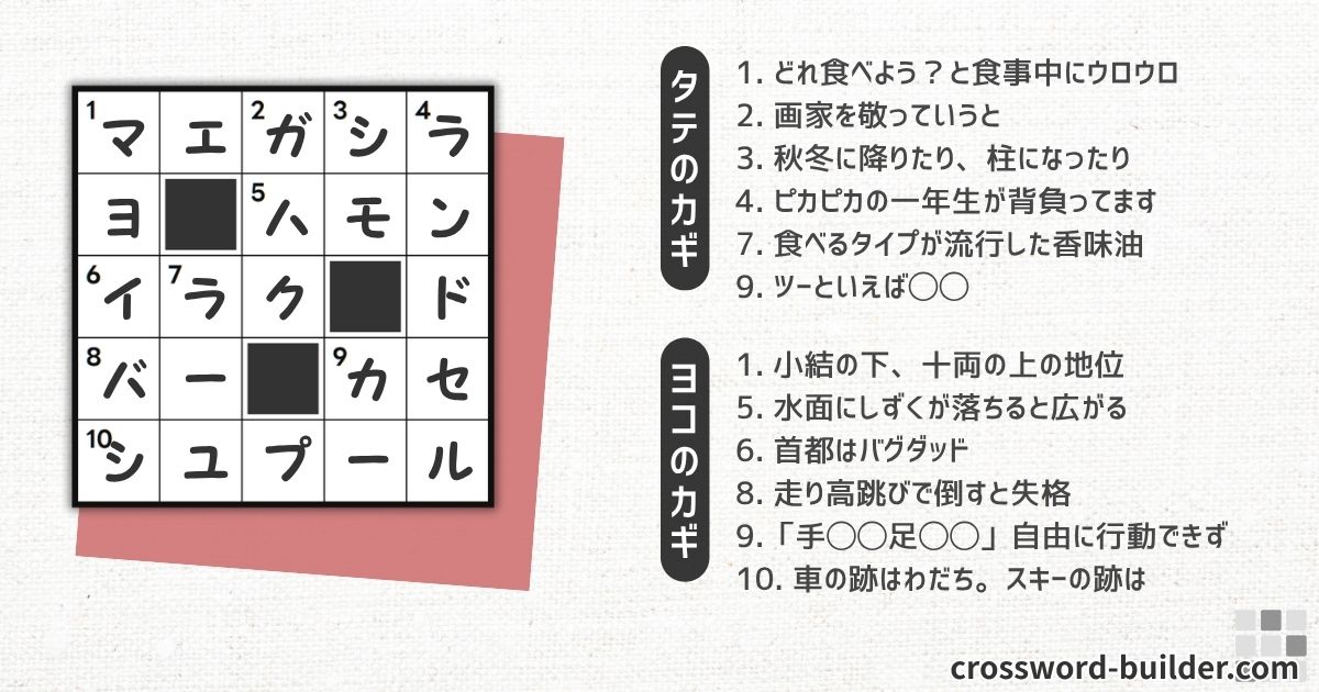 - 転載する際は、出典元「クロスワードビルダー.com ( https://crossword-builder.com/ )」の明記をお願いいたします。