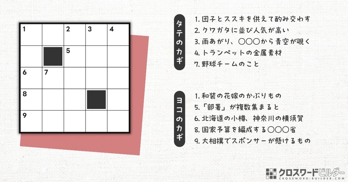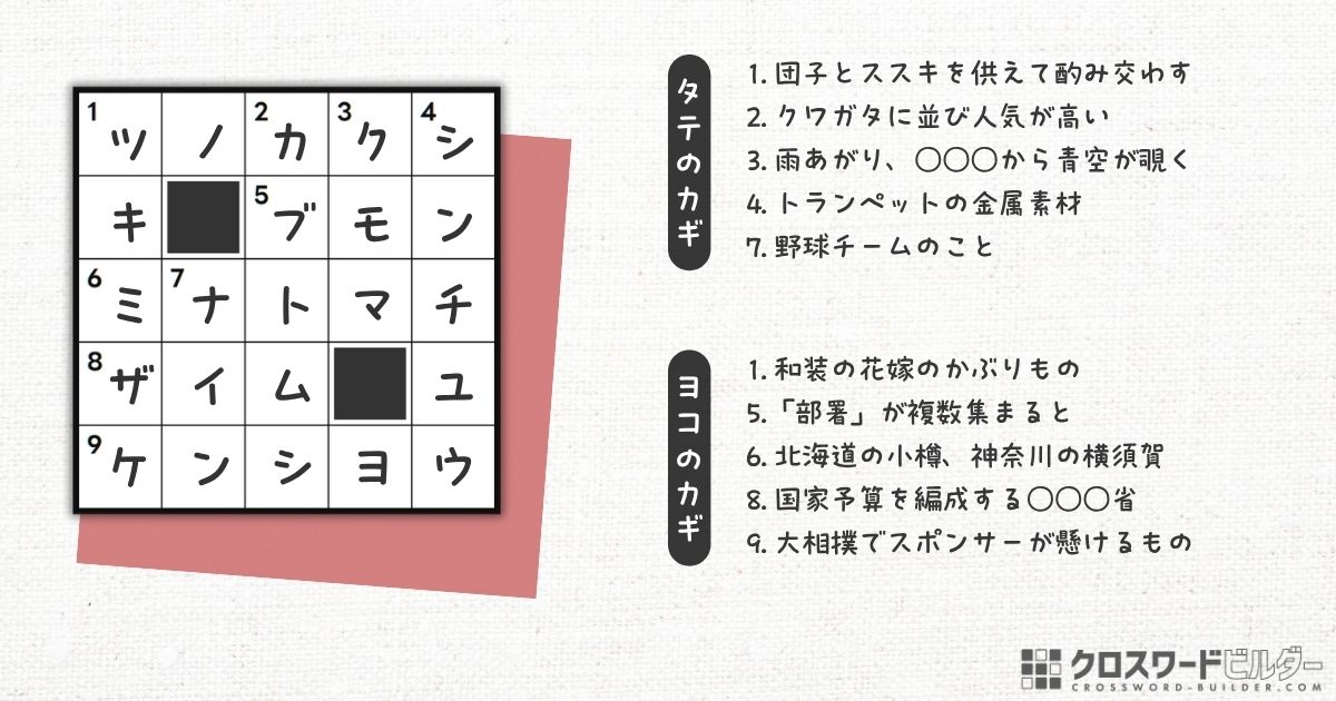 クロスワードパズル 小品#005「団子とススキを供えて酌み交わす」