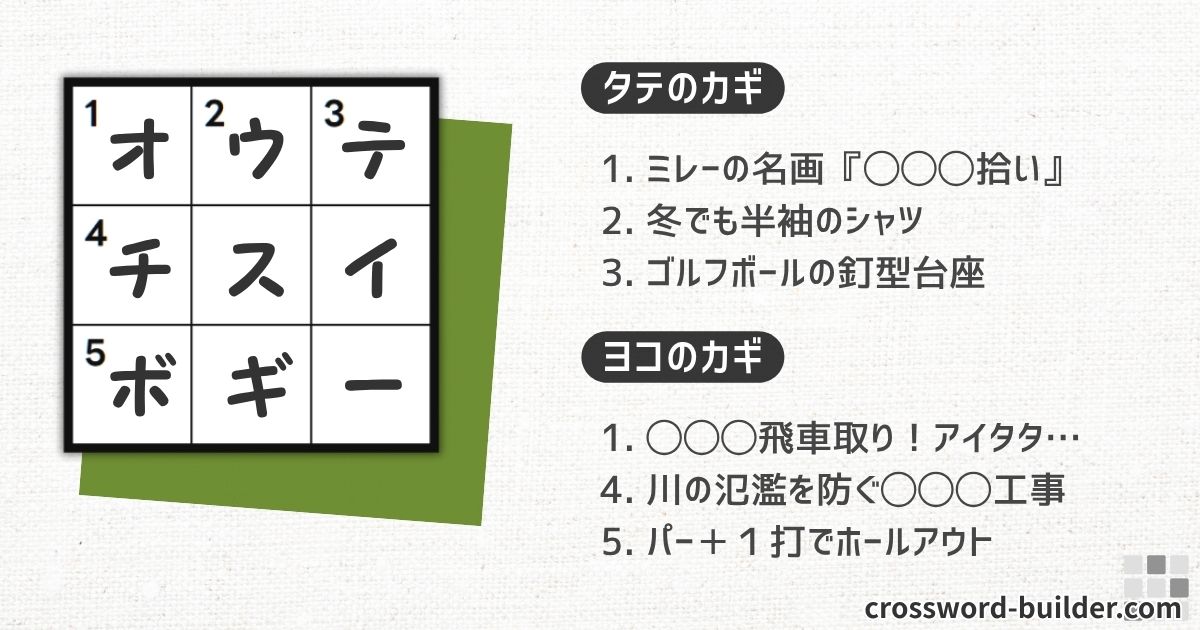 クロスワードパズル 小品#010「ミレーの名画『〇〇〇拾い』」