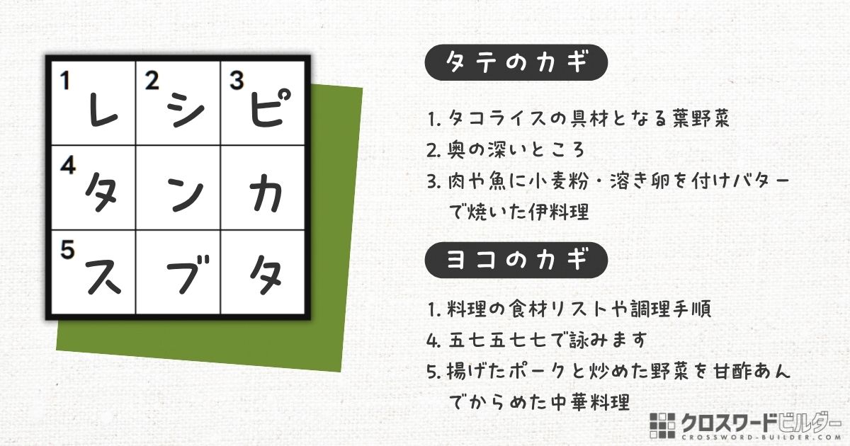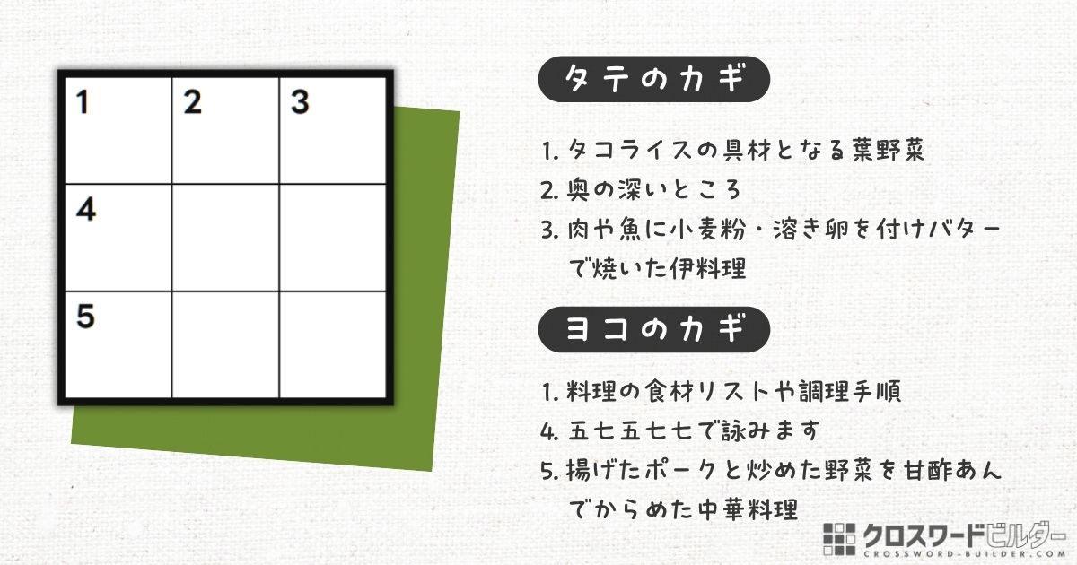 クロスワードパズル 小品#012「タコライスの具材となる葉野菜」