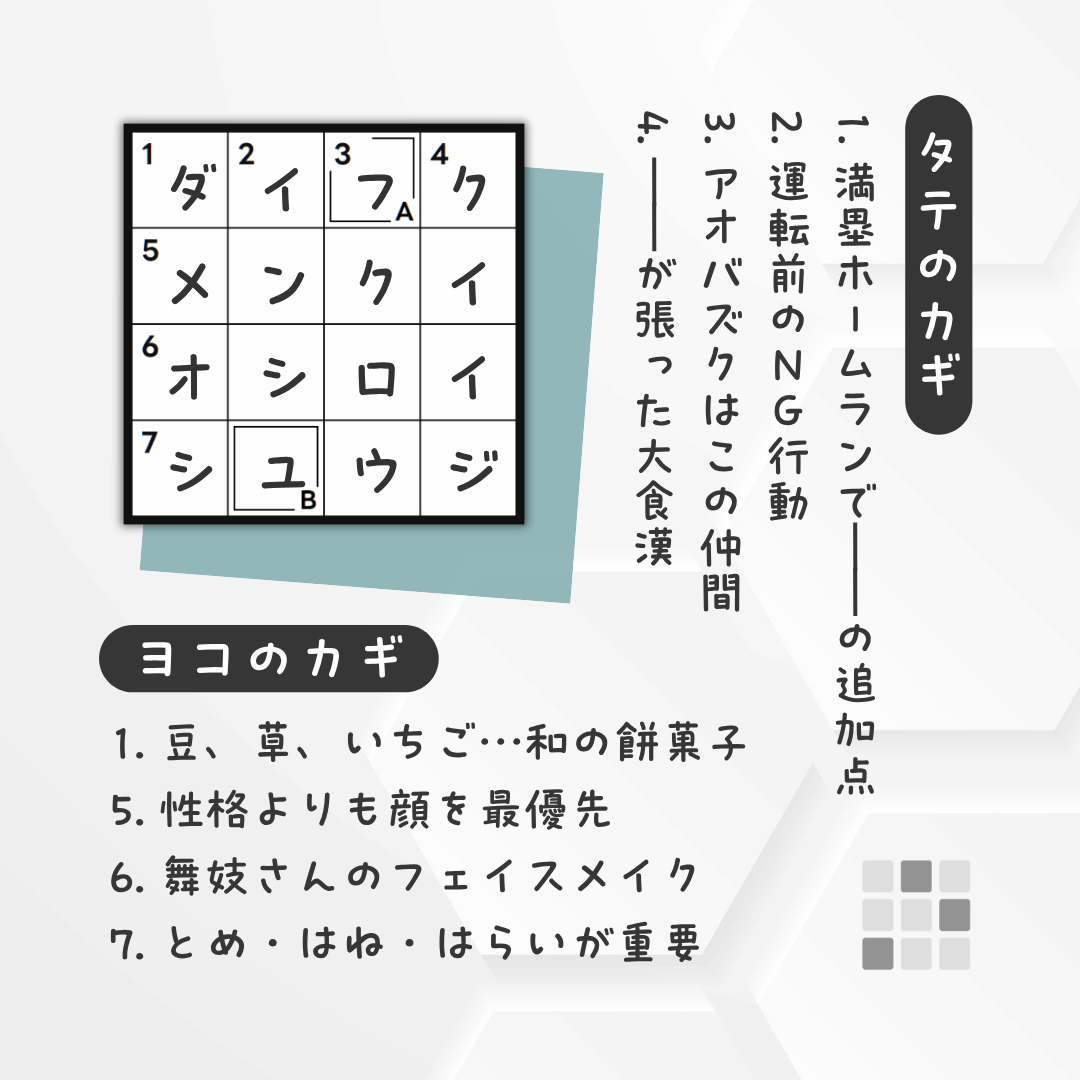 クロスワードパズル 小品#023「満塁ホームランで〇〇〇〇の追加点」