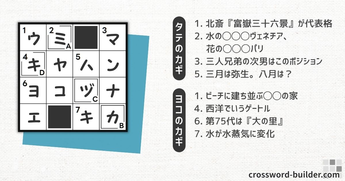 - 転載する際は、出典元「クロスワードビルダー.com ( https://crossword-builder.com/ )」の明記をお願いいたします。